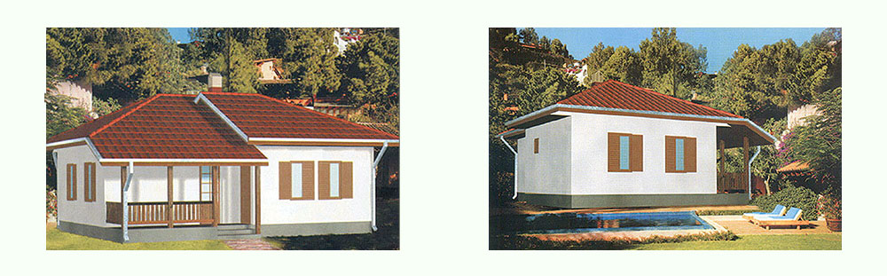 Kuća se sastoji od terase, predsoblja, dnevnog boravka, ostave, kuhinje, kupatila, spavaće sobe i dečje sobe.